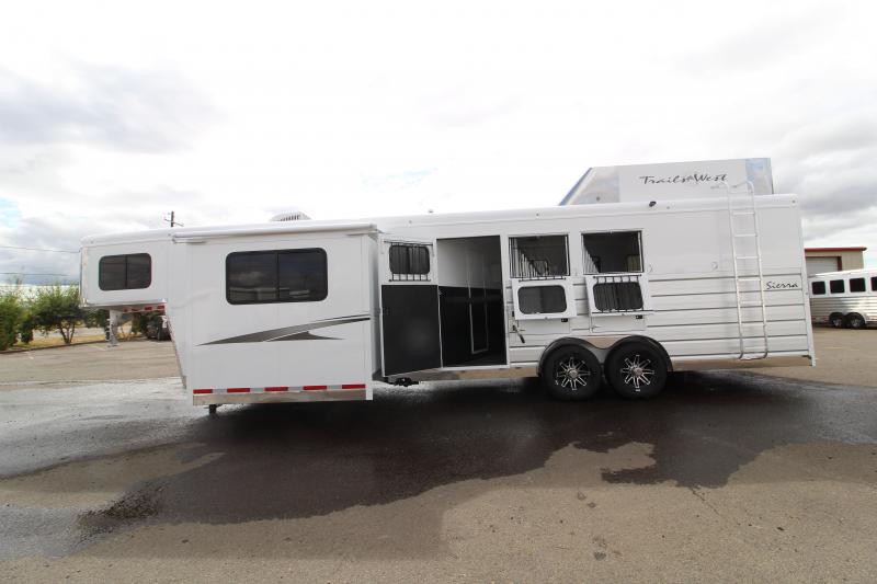 2020 Trails West Sierra 11 X 15 Short Wall Living Quarters With Slide Out Side Load 3 Horse Trailer Hay Rack Gas Generator Ready Mangers Easy Care Flooring